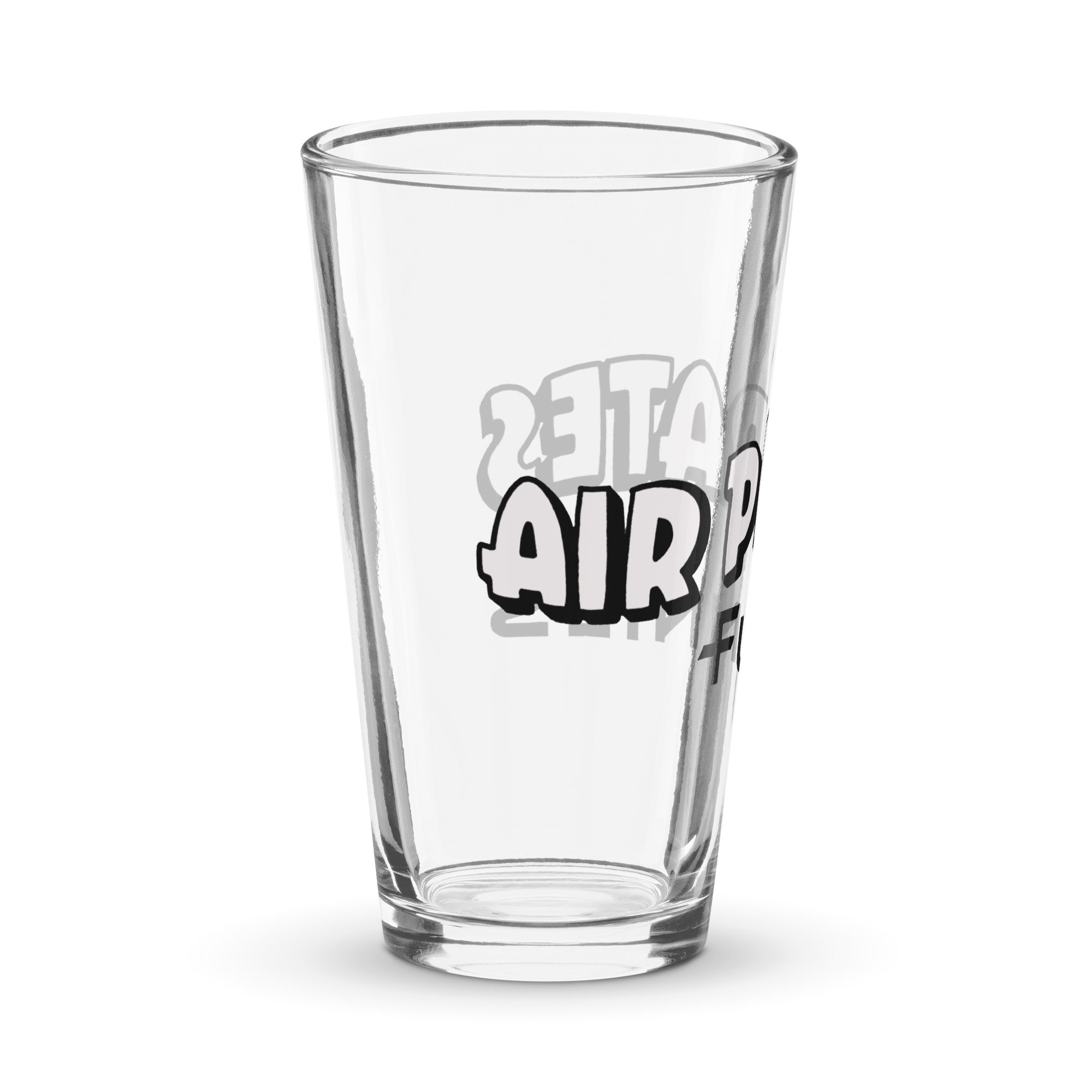 Drown your sorrows and plan your escape with this high quality 16 oz Air Pirates pint glass, featuring Gary Hallgren's logo for this infamous band of underground comix troublemakers.