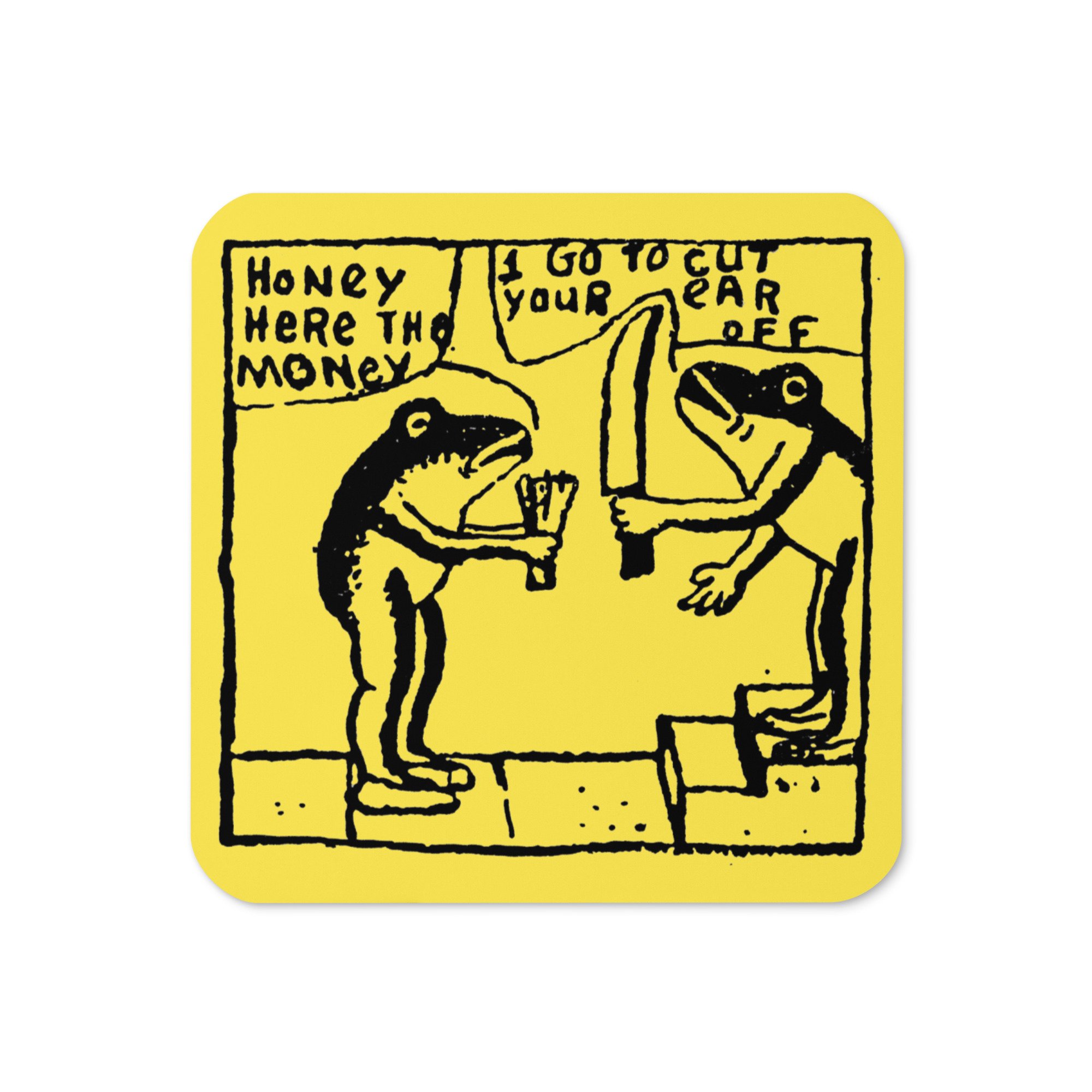 A deluxe style cork-backed coaster featuring artwork by the mysterious Eugene Teal.
