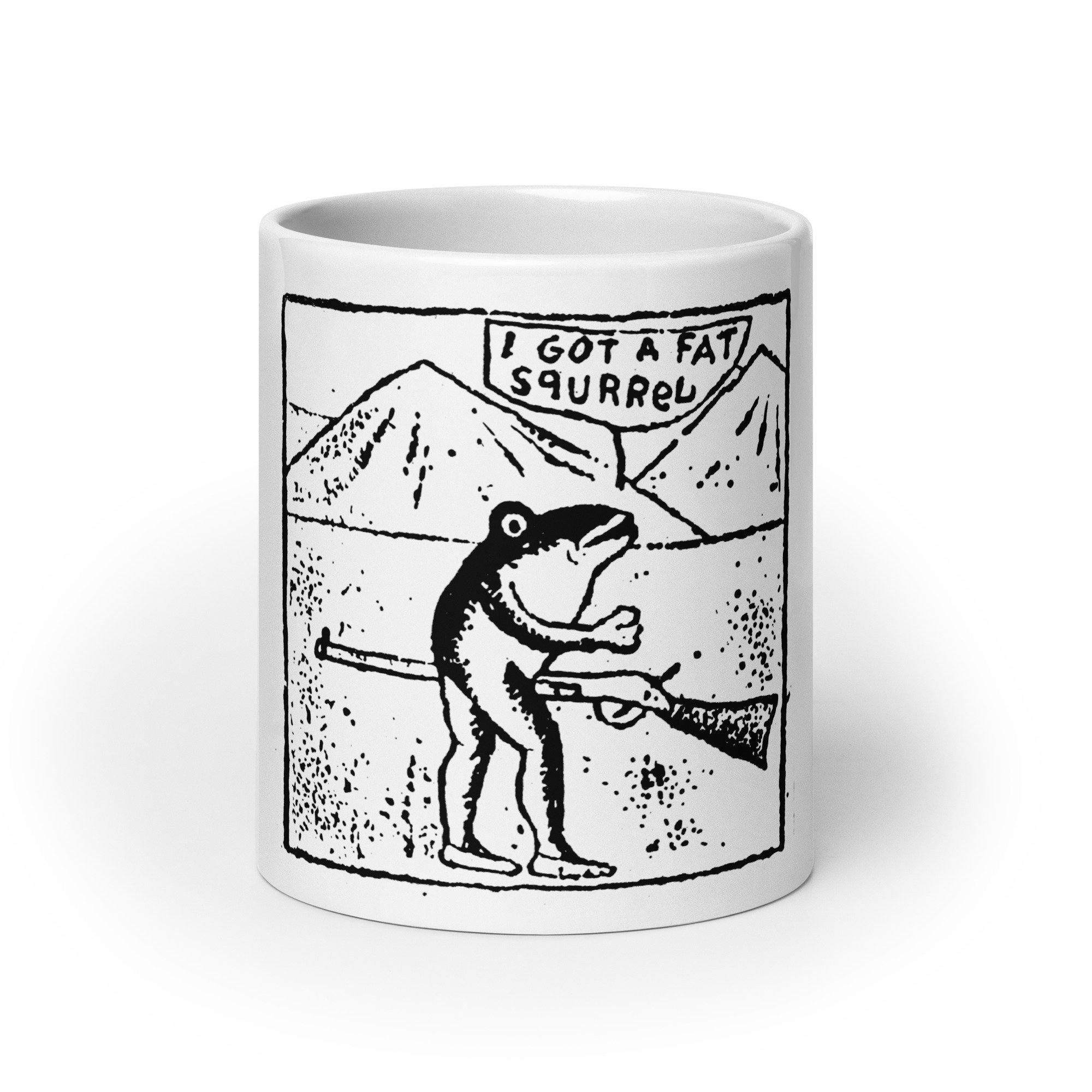 A panel from the legendary Eugene Teal's Frogs Sunday Funnie comic strip on a high quality coffee mug. Art by one of the most mysterious figures in comics history.