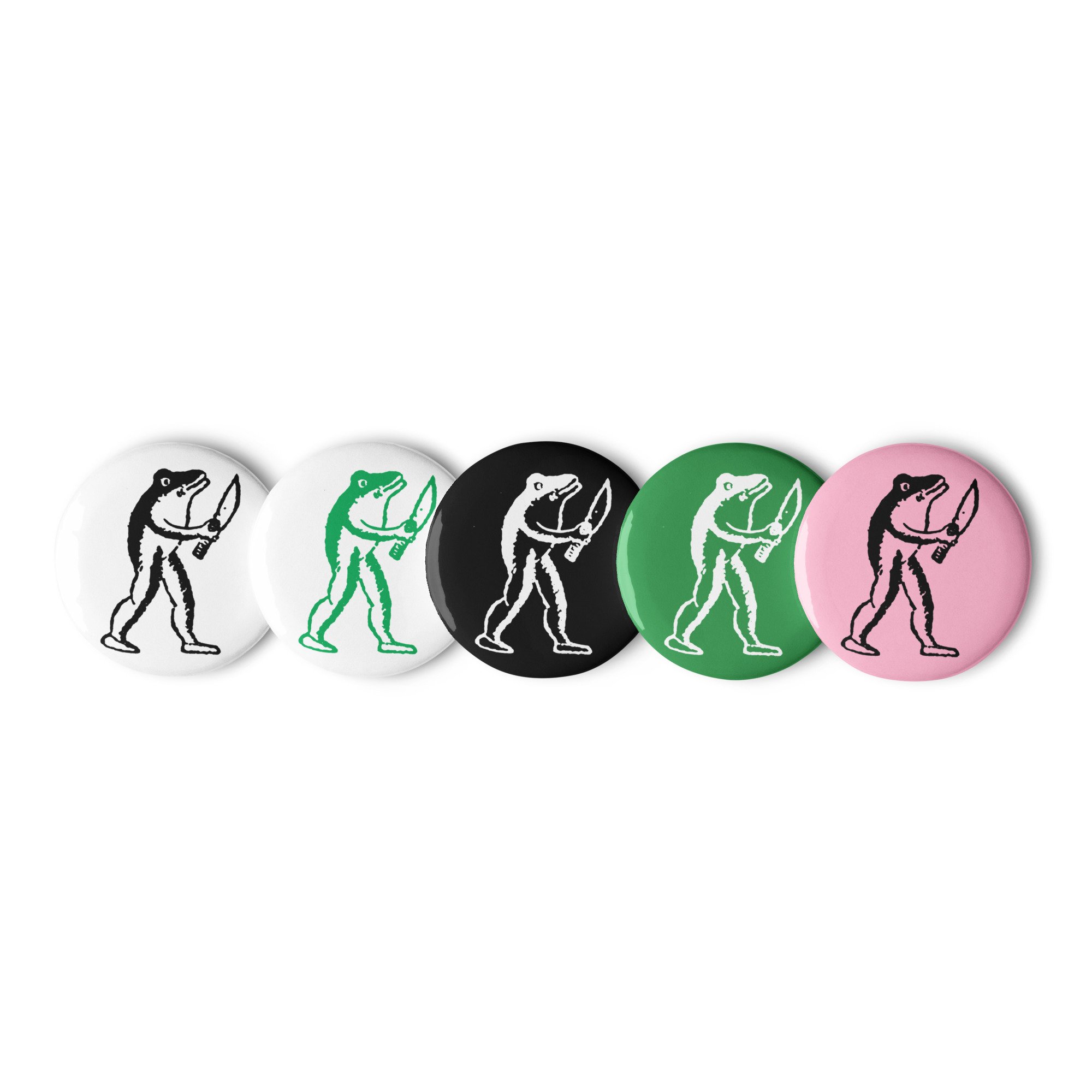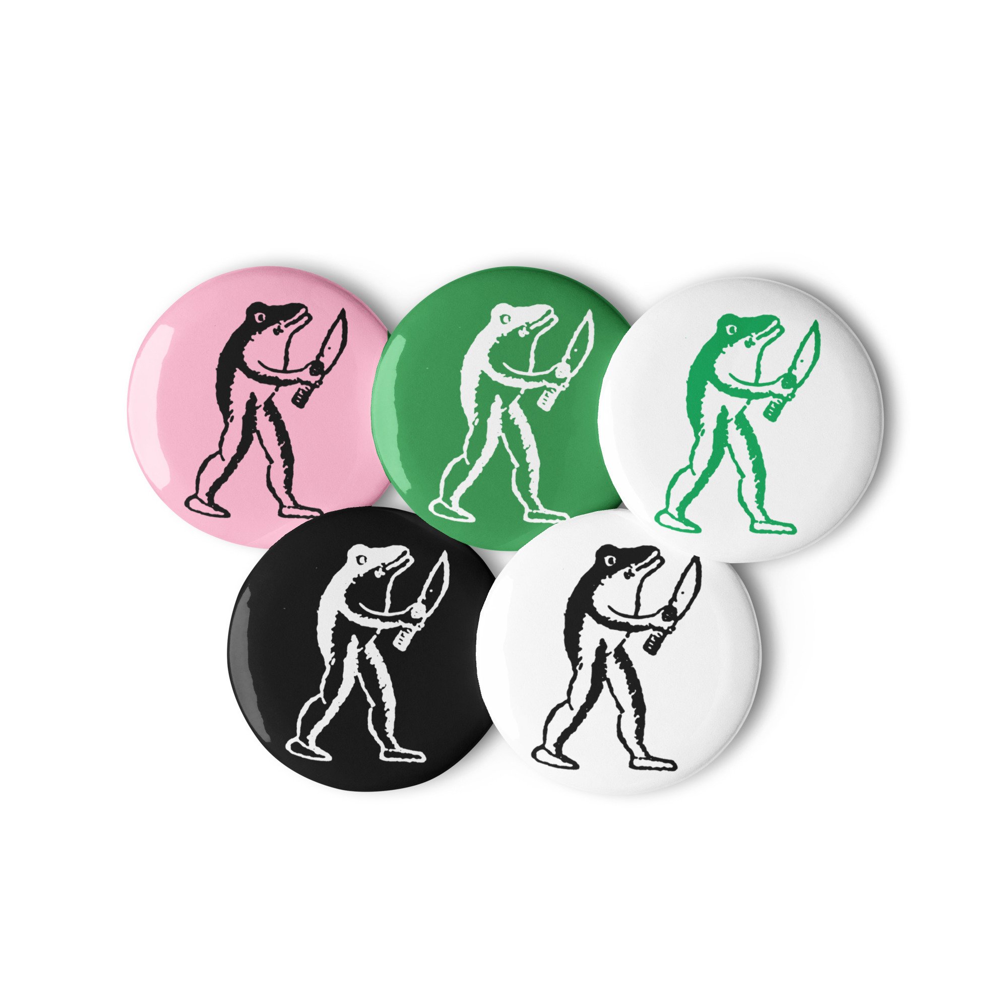 A set of five Frog buttons by the mysterious artist Eugene Teal.