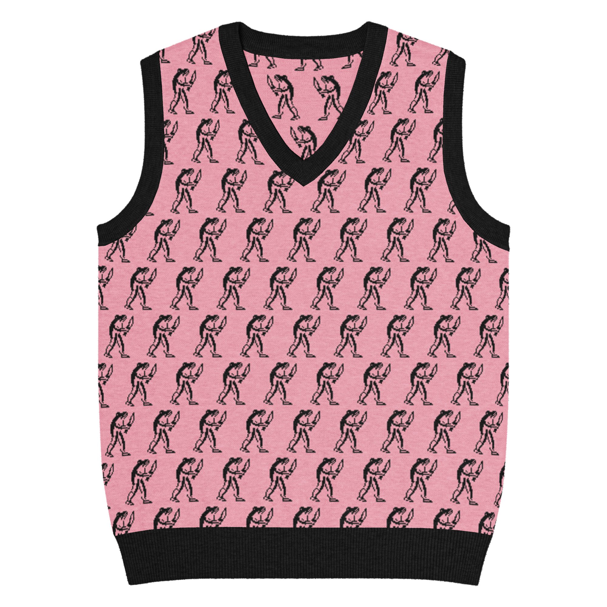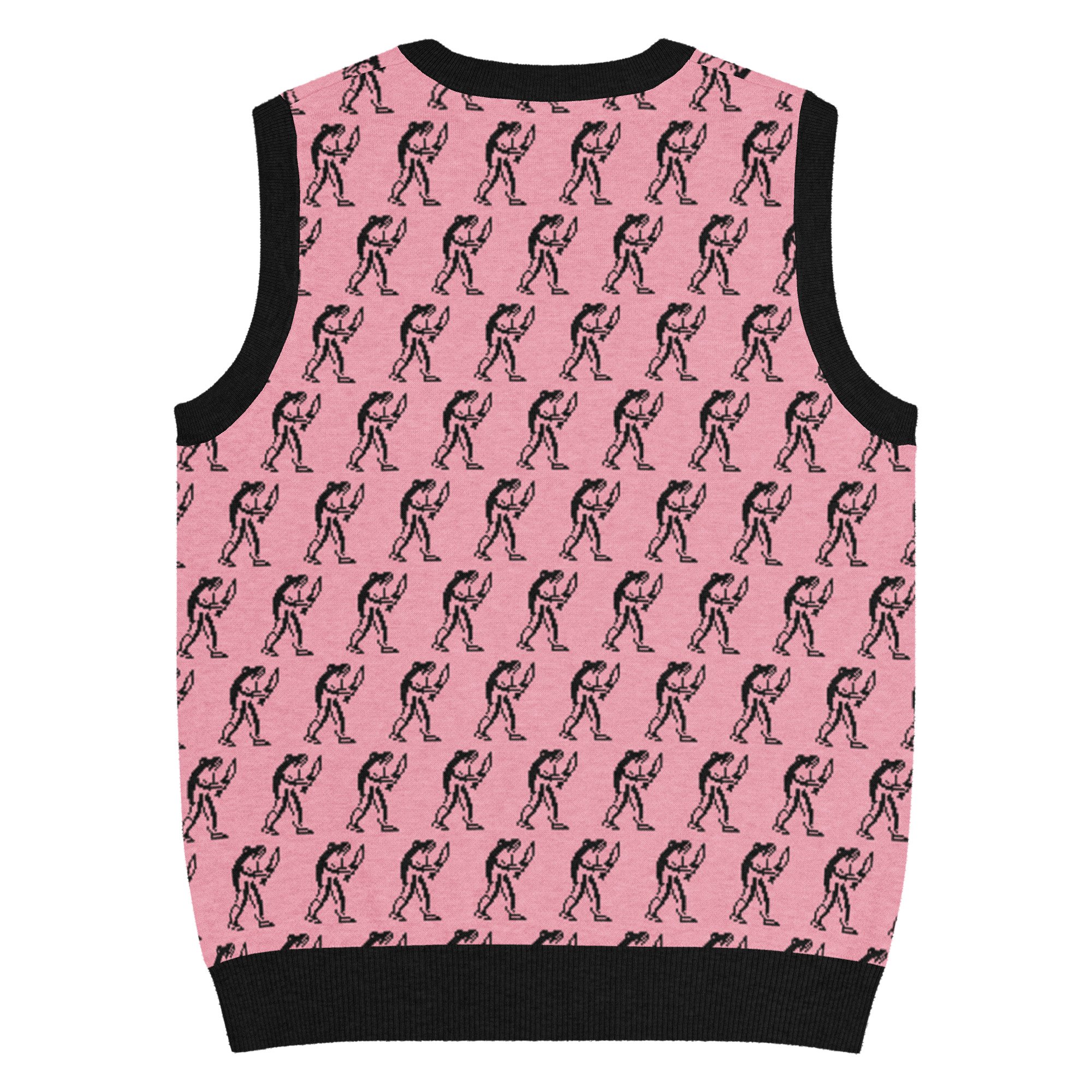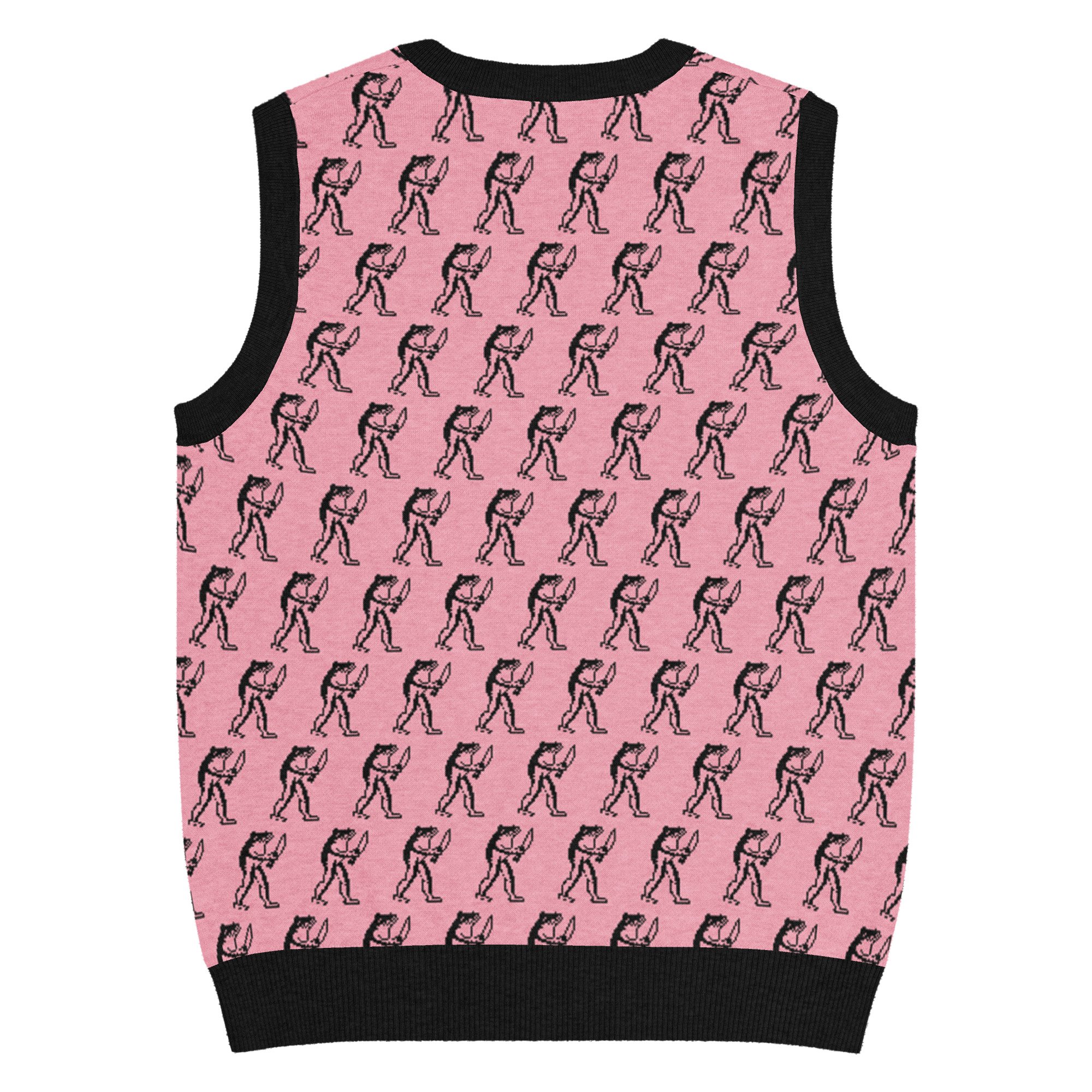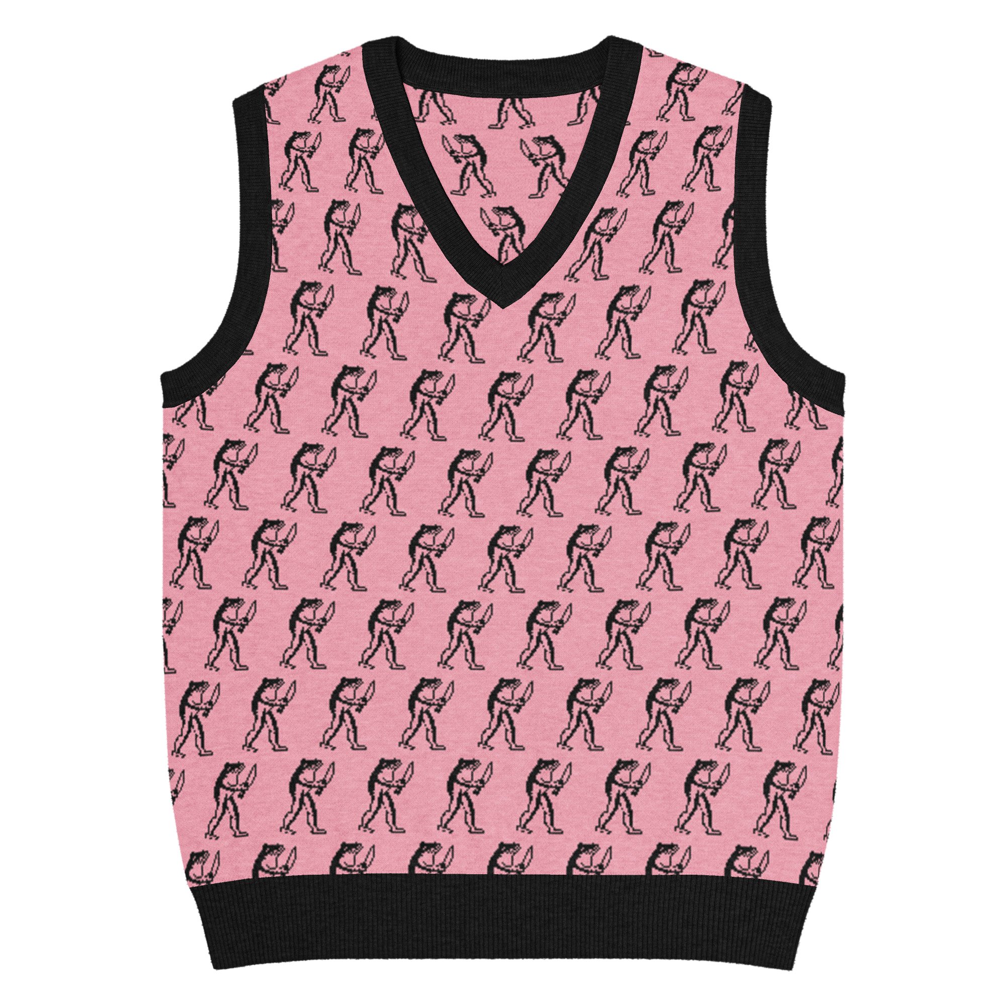 Eugene Teal - Frog with Knife Knit V-neck Vest - Pik and Black