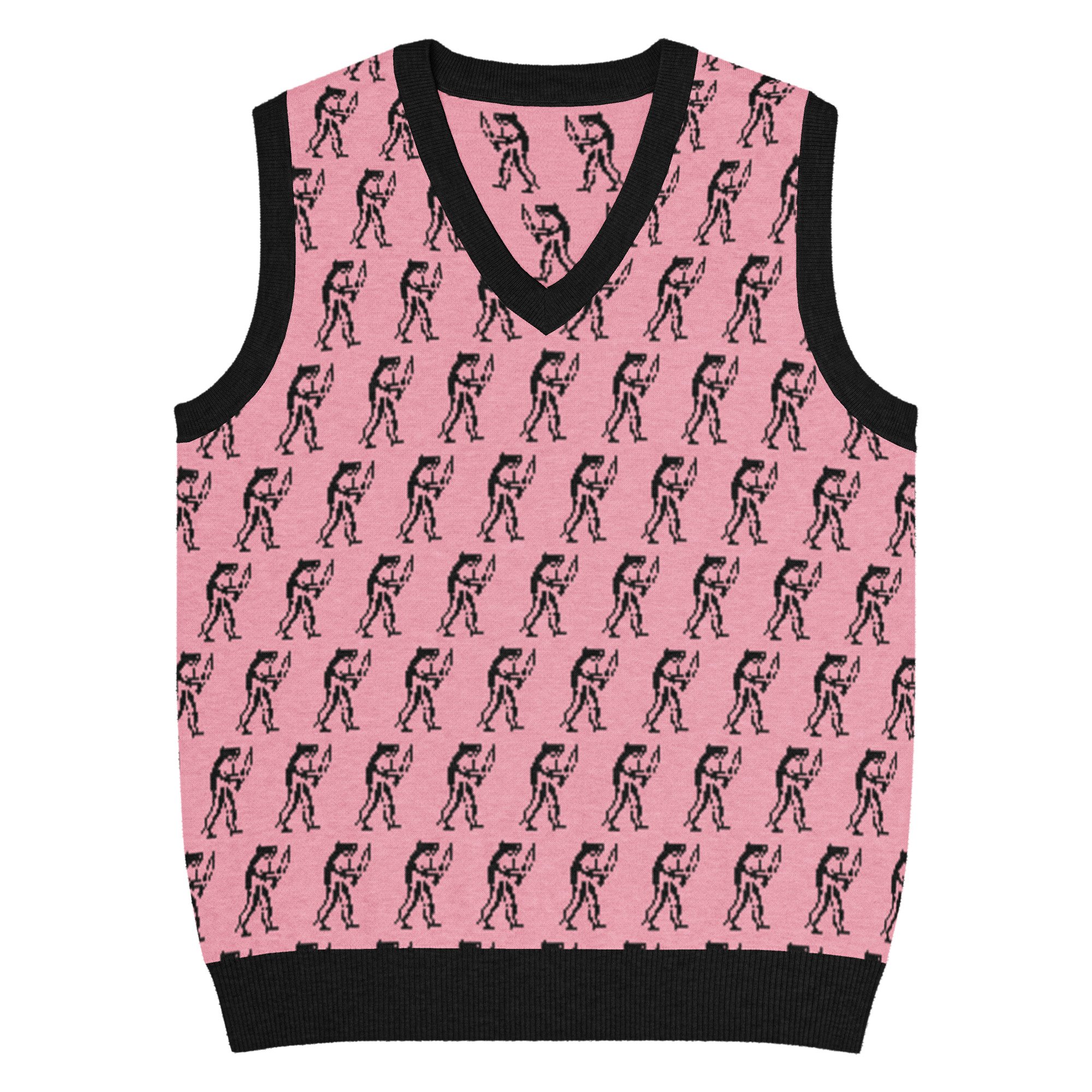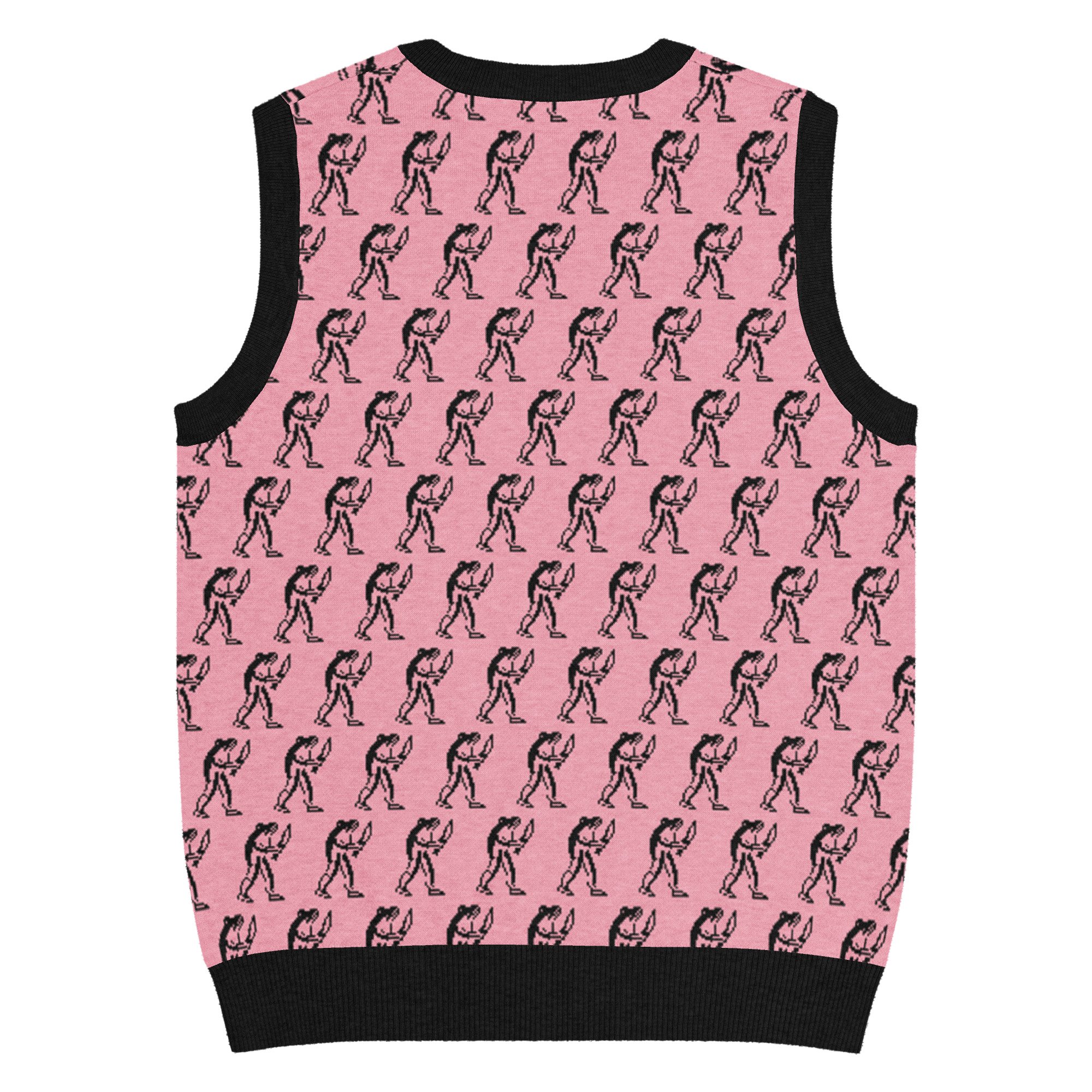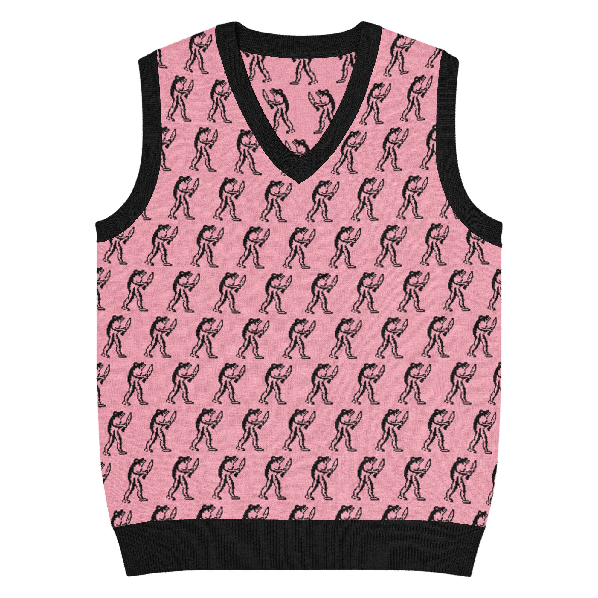 Eugene Teal - Frog with Knife Knit V-neck Vest - Pik and Black