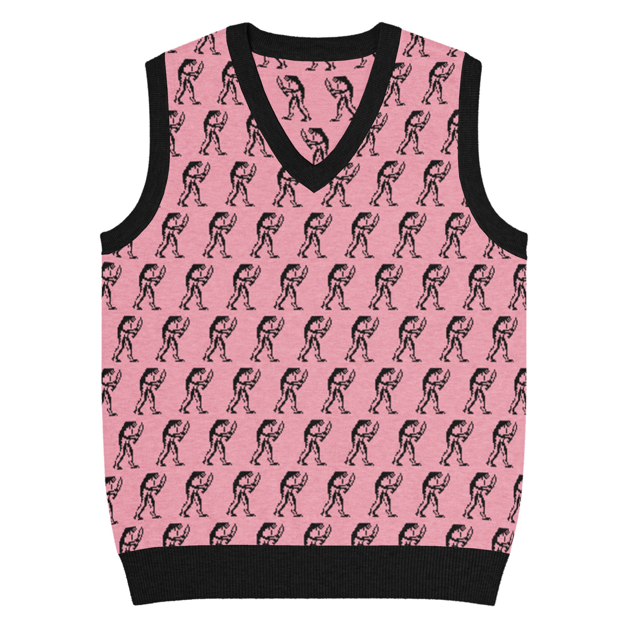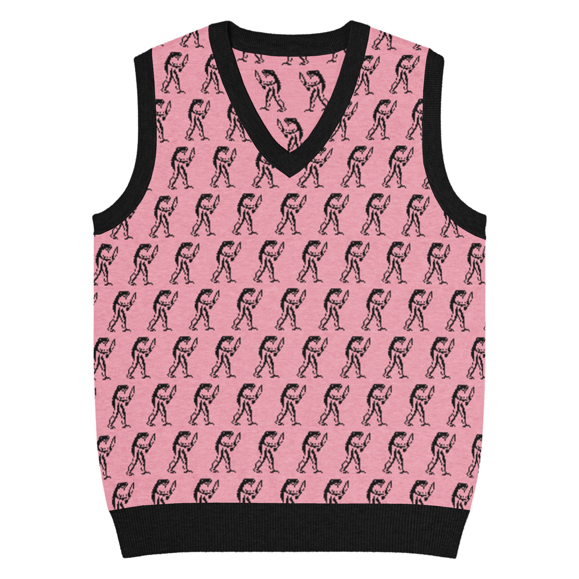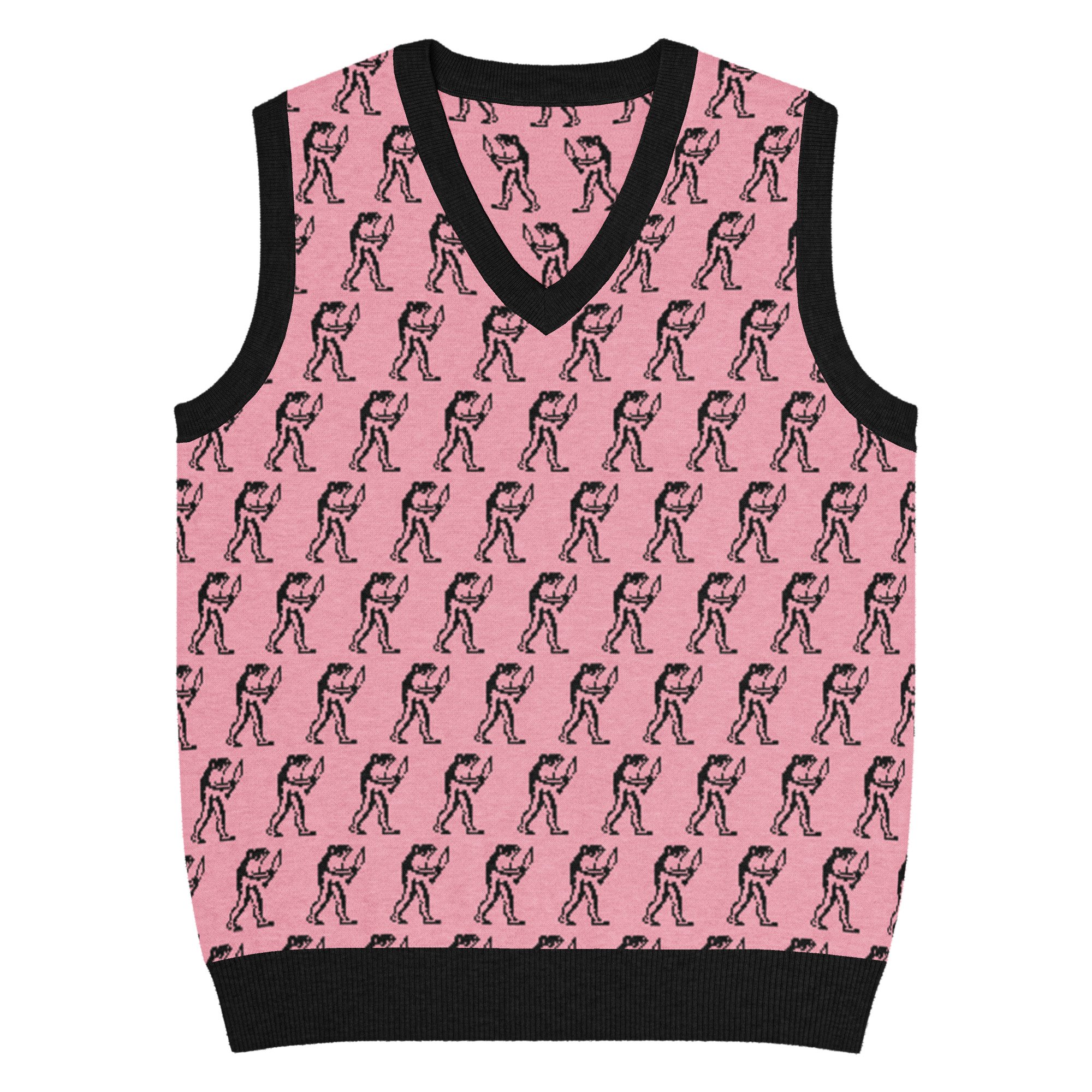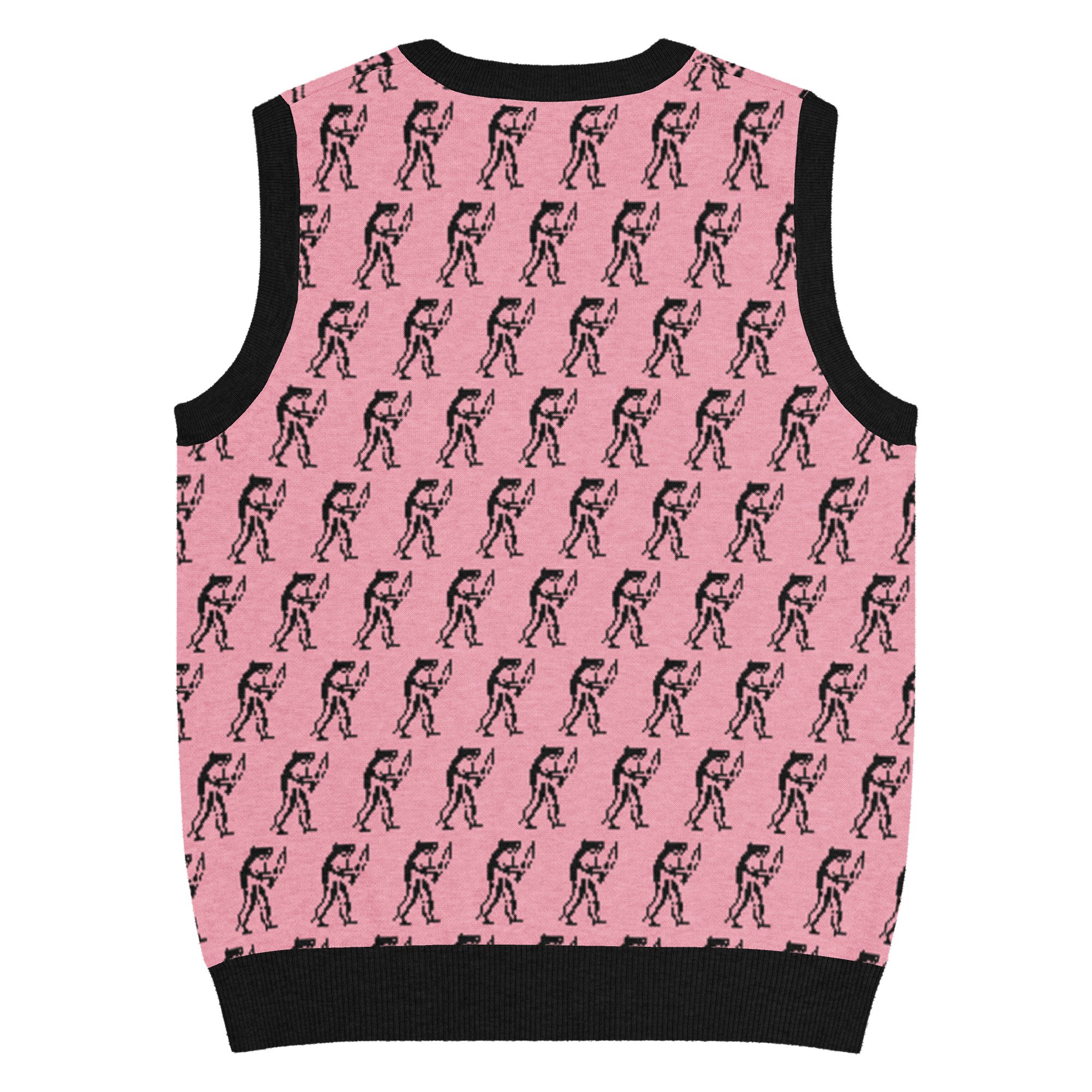 Eugene Teal - Frog with Knife Knit V-neck Vest - Pik and Black