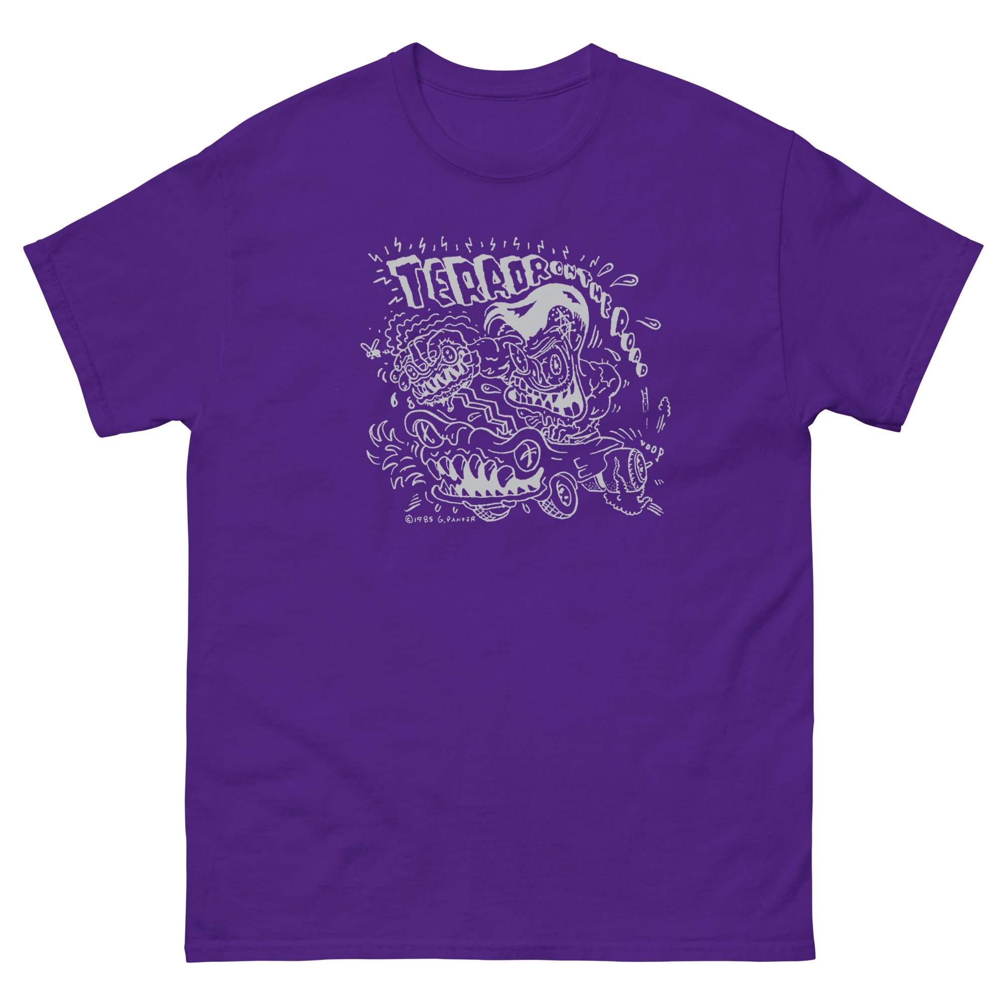 Authorized by Gary Panter, here's a mind-blowing Hot Rod classic directly from his ultra rare 1986 ROAD RAGE collection of sketchbook drawings. Printed on high quality Gildan 5000 shirts, which run true to US sizing. In a variety of sizes.