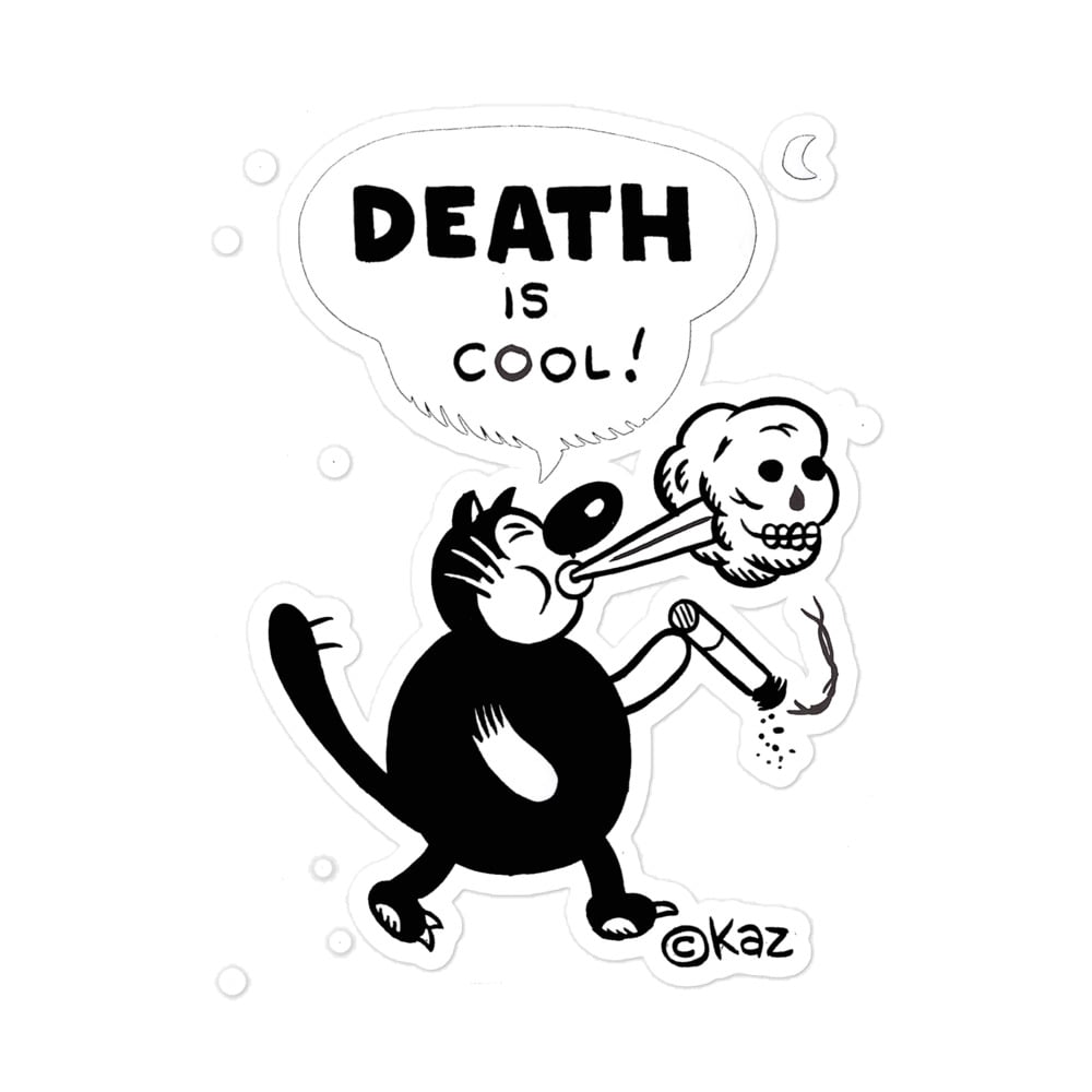 Here's the sticker you wish you had, or wish you had again. Kaz's Smoking Cat in one of the most iconic panels from the alt weekly newspaper comics era. Available again for you! In multiple sizes.