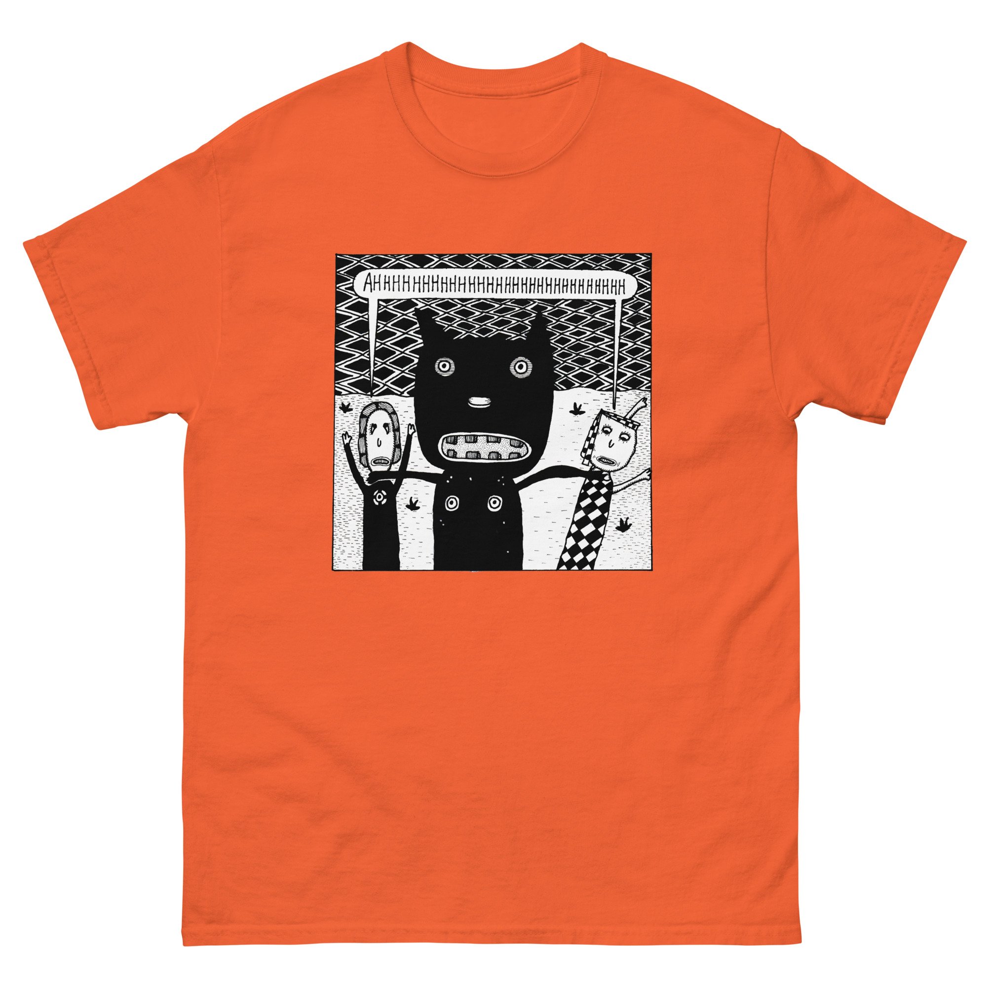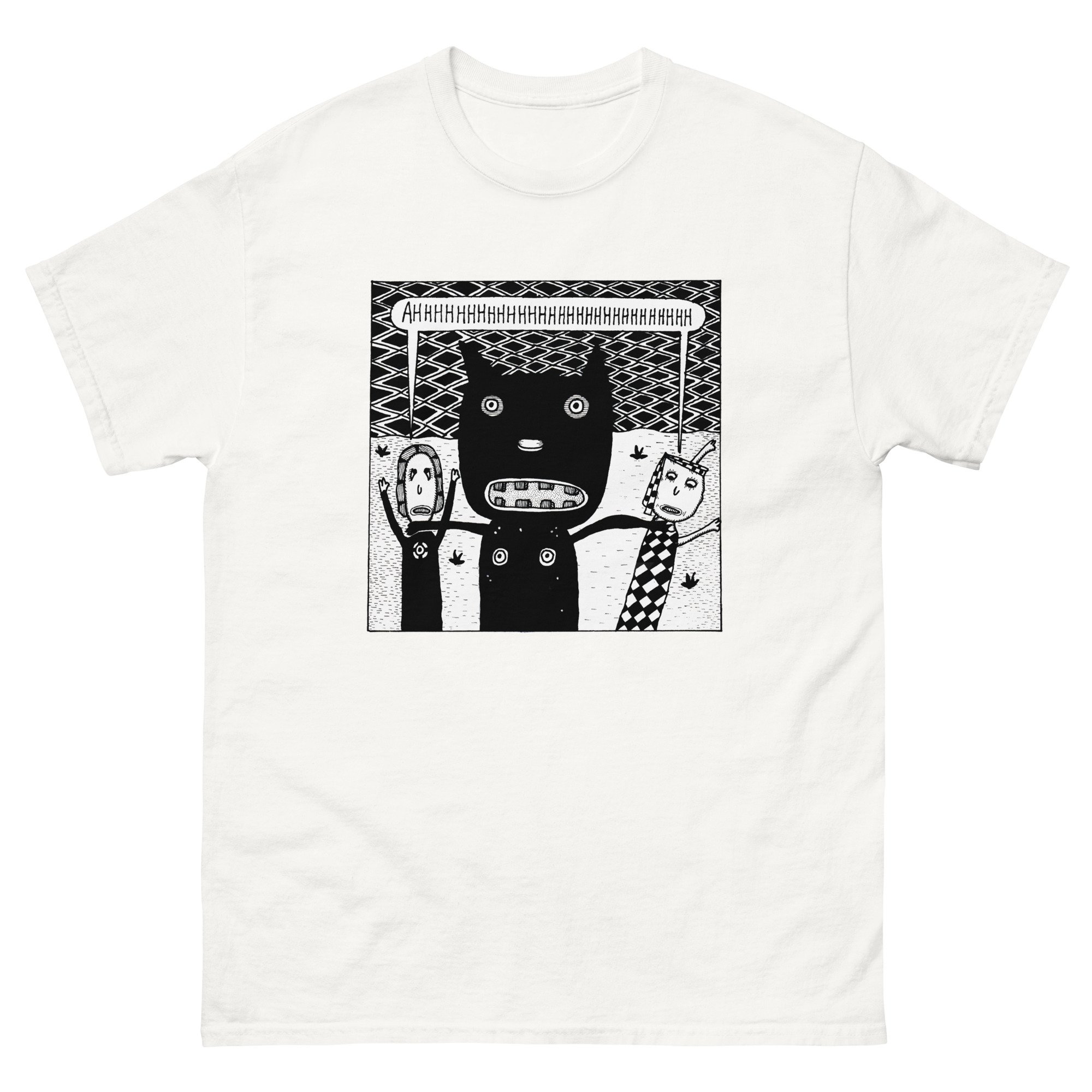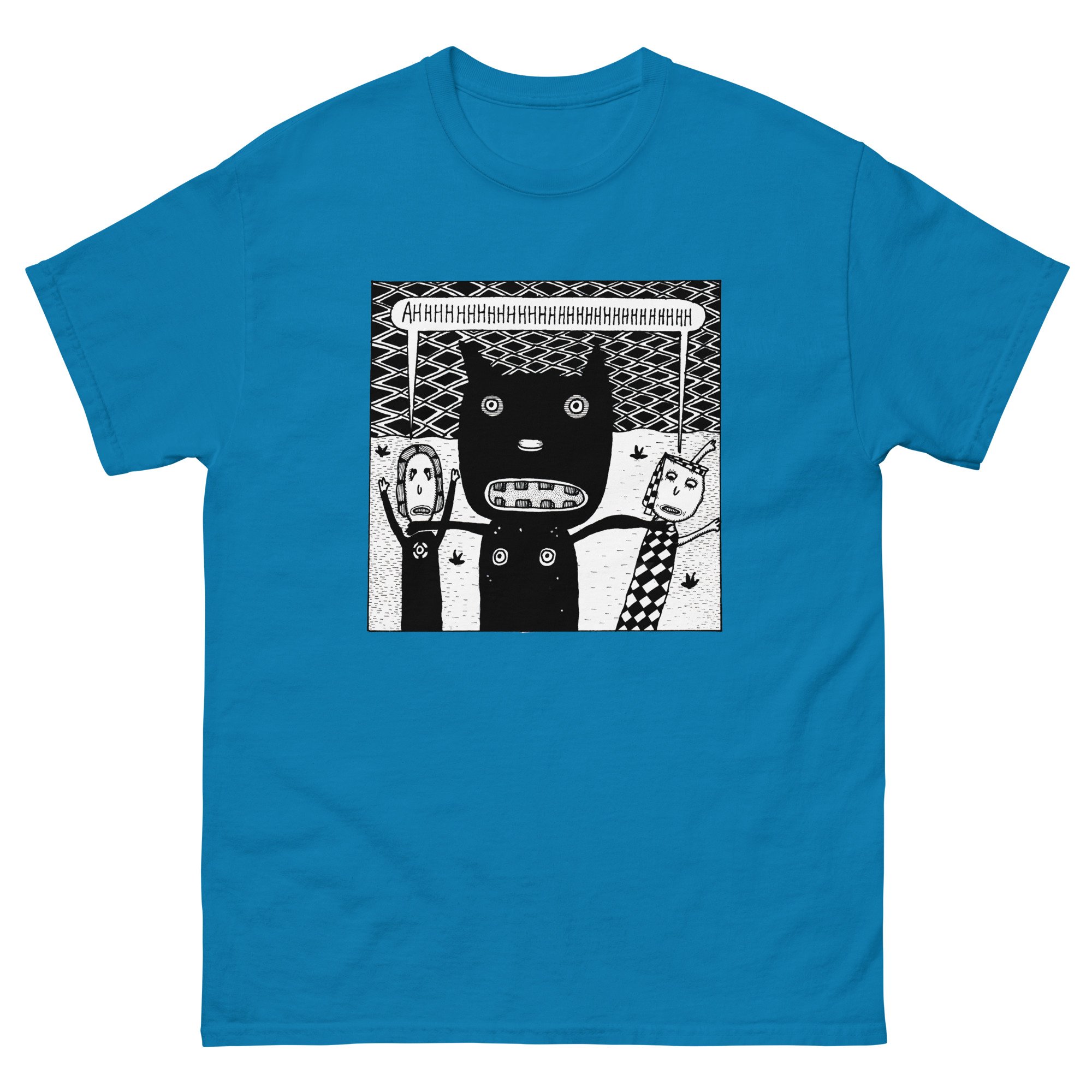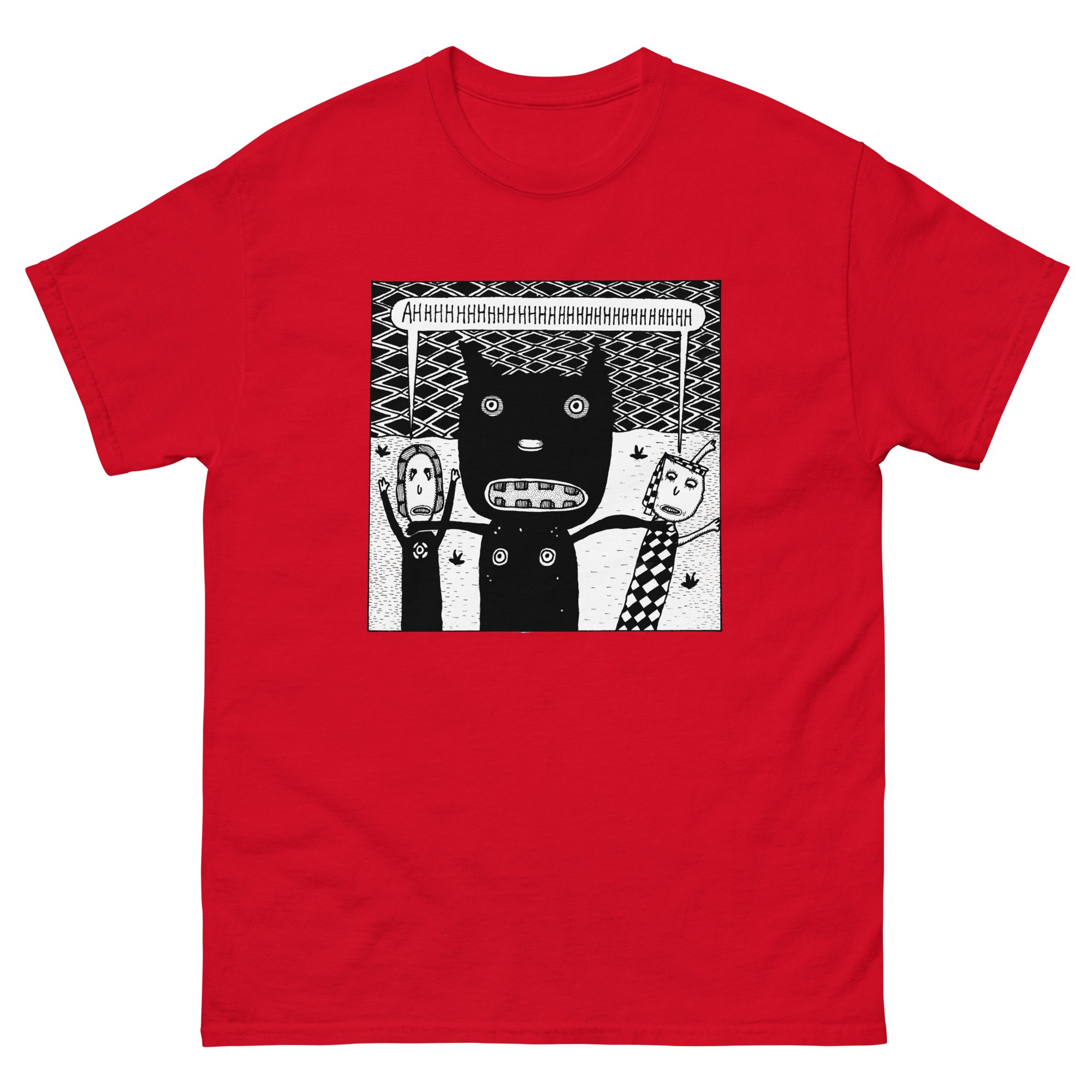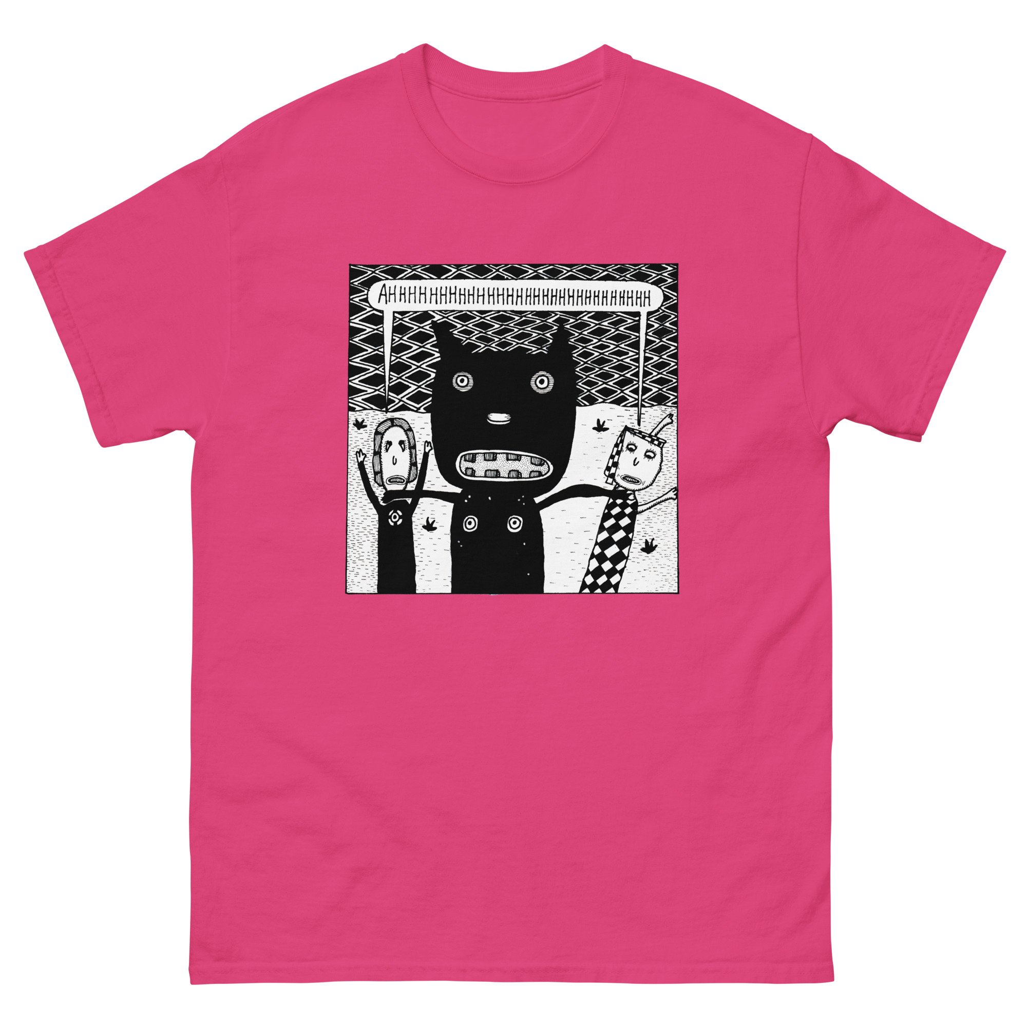 A classic Amy & Jordan design by Mark Beyer on a high quality Gilden 5000 t-shirt. Available in a variety of sizes and colors. All revenue raised for the sale of Mark Beyer merchandise on Dummy goes directly to helping Mark pay for the extremely high costs of health care associated with a medical condition he is currently dealing with. Get a great shirt, help a great artist!