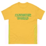Wallace Wood's 1964 logo for MONSTER WORLD magazine in GREEN on a high quality Gilden T-Shirt. Multiple colors and sizes.