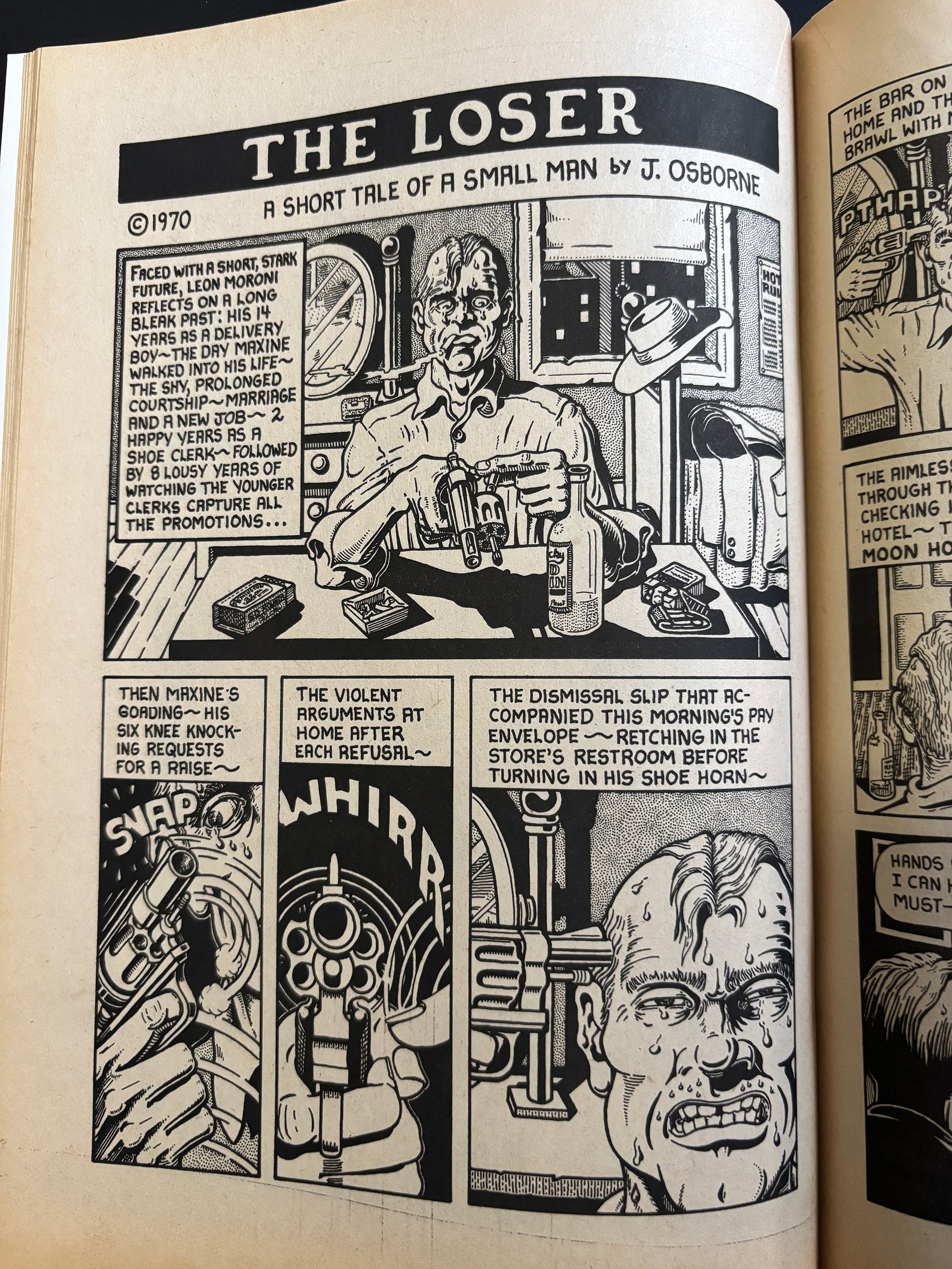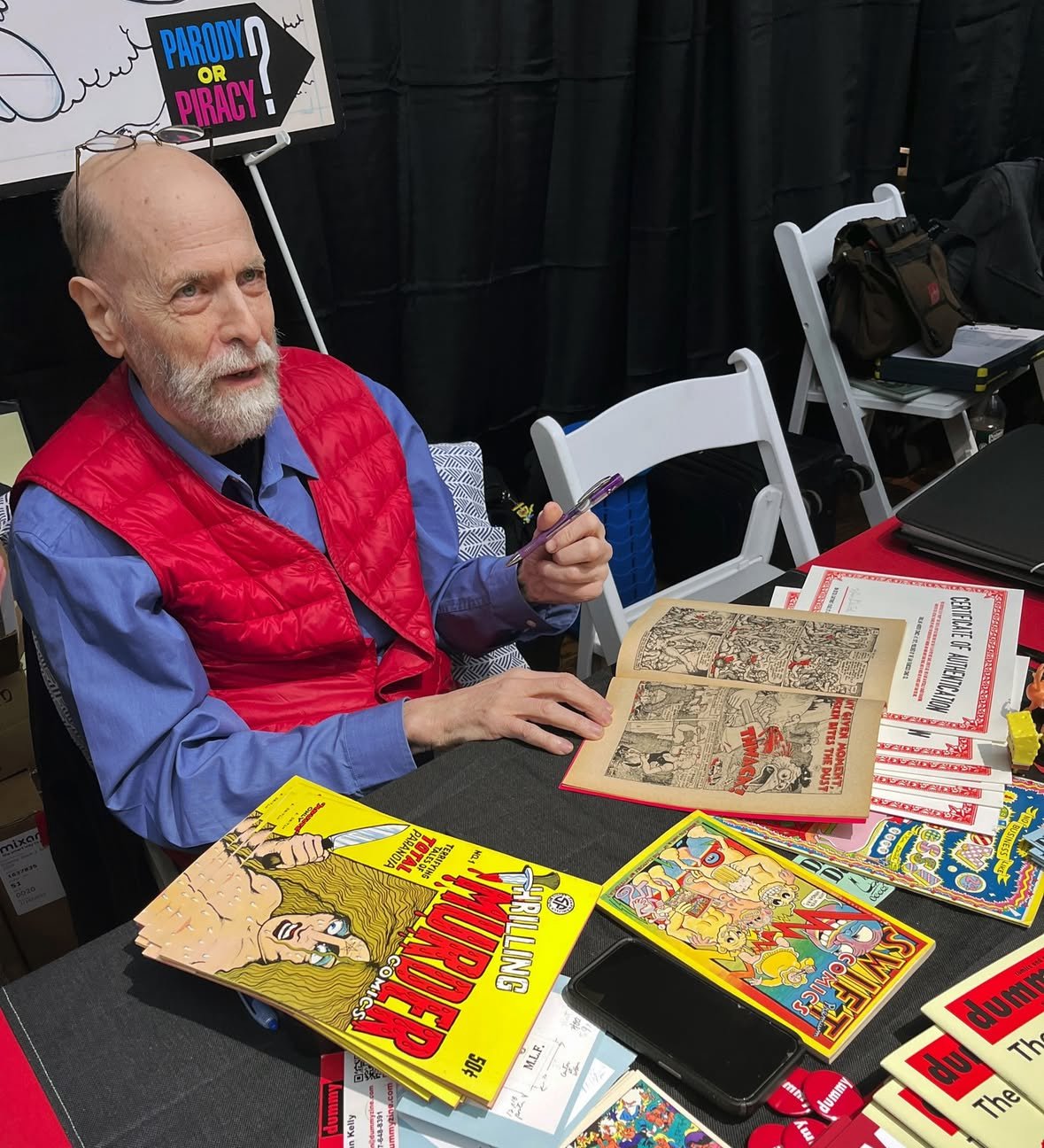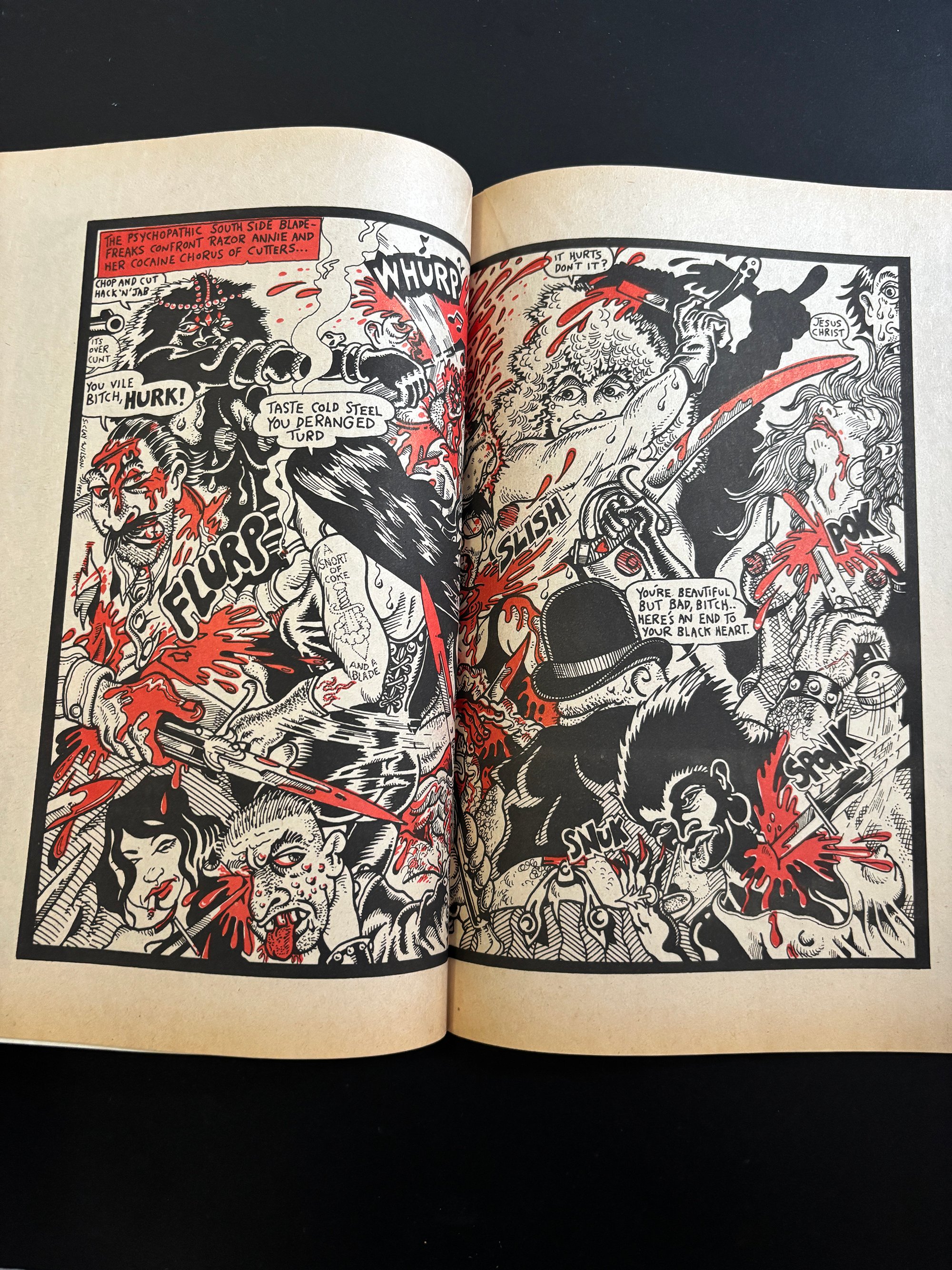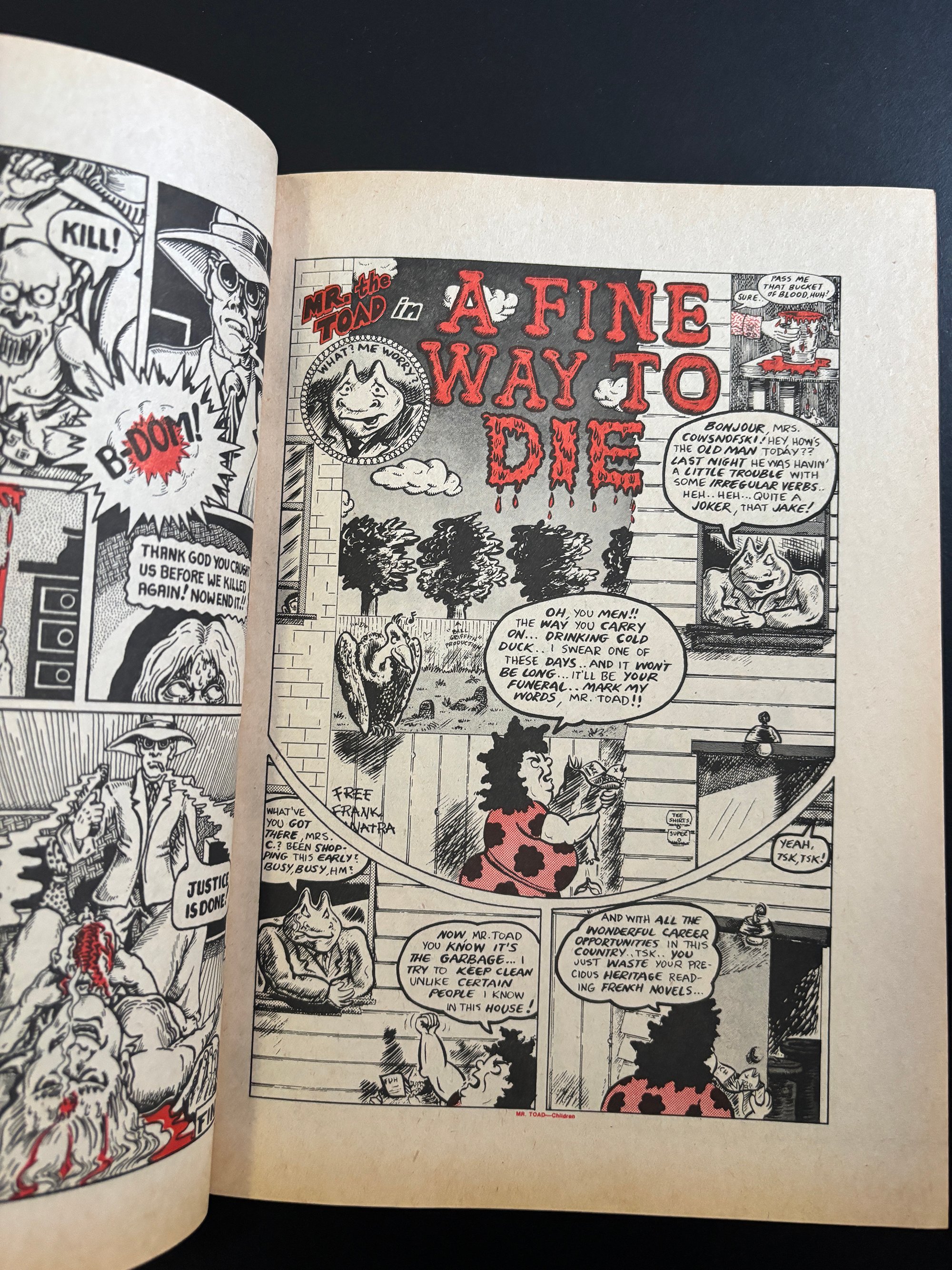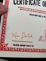 LIMITED SUPPLY: A stunning copy of one of the greatest Underground Comix ever made - THRILLING MURDER #1 - Signed by Kim Deitch. This 1971 beauty features insane front and back covers by Simon Deitch, with grusome inside artwork by Robert Crumb, S Clay Wilson, Spain, Bill Griffith Jim Osborne, Greg Irons and Kim Deitch. Kim signed each copy on the page his story starts. PLUS: Each copy comes with a magnificent letter press printed (meaningless, but cool) CERTIFICATE OF AUTHENTICITY from Dummy, which is signed by Kim and Dummy. Dummy has a small supply of copies of this must have UG classic, all in extremely great shape--They have never been read and have been untouched for 55 years. Supplies are extremely limited. All copies will come bagged and boarded and with the certificate.