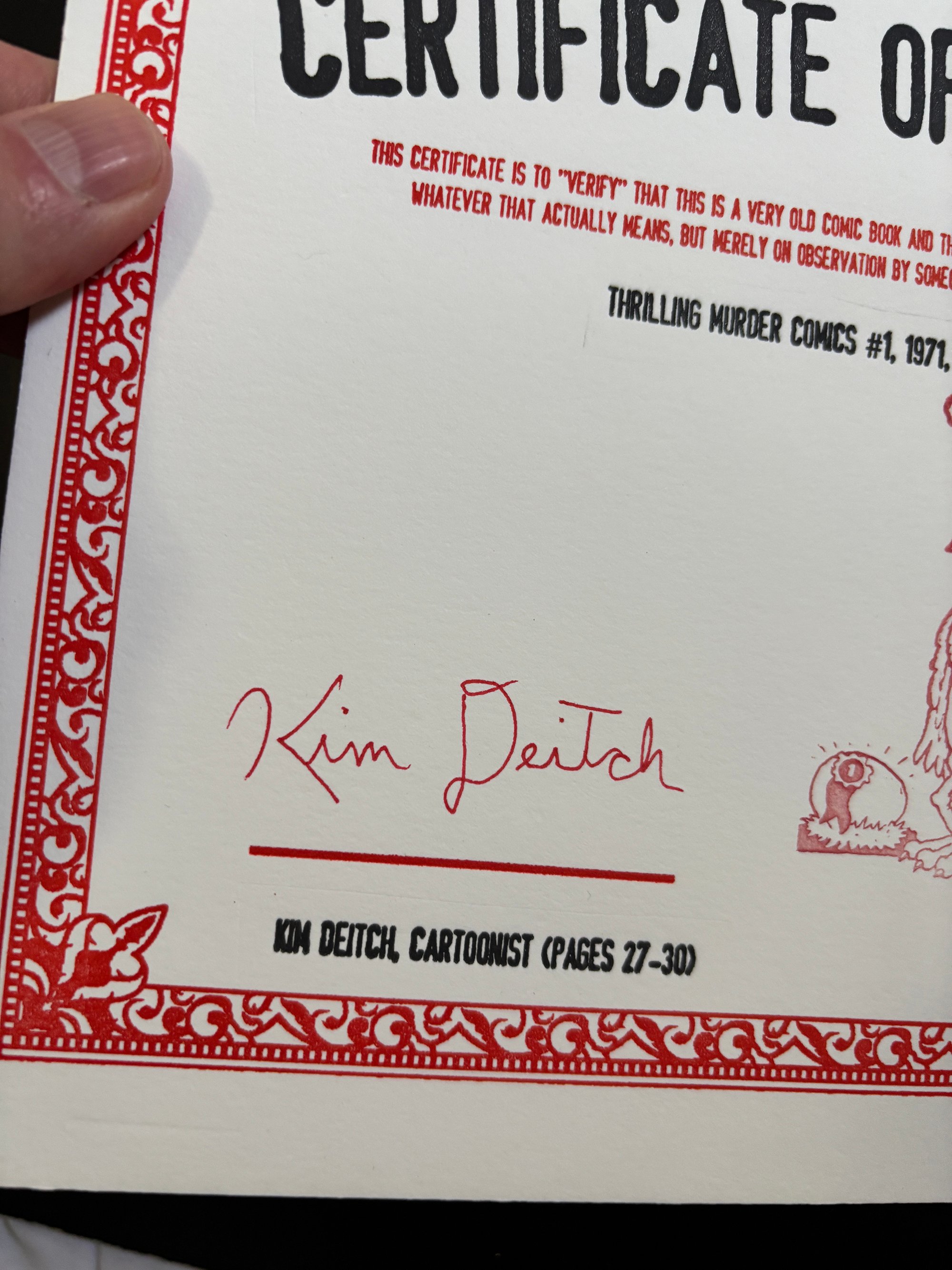 THRILLING MURDER COMICS #1 - Signed by Kim Deitch (with certificate)